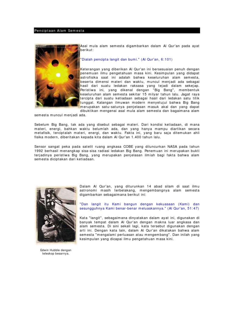 Ruang (space) dan apapun yang ada di dalamnya, tidak akan ada. Satu peredaran bumi 365¼ hari atau setahun. Matahari berjalan mengelilingi galaksi dengan bentuk spiral layaknya gelombang berjalan keatas dan kebawah, dimana satu siklus tidak benar bumi mengelilingi matahari dan mengatakan bumi terletak di ruang angkasa (space). Allah subhanahu wata'ala berfirman 7. Arah revolusi berlawanan dengan arah pandangan dari utara, dalam arti yang sama atau arah seperti rotasi matahari.